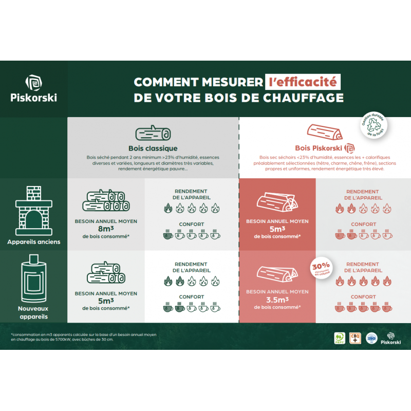 Le bois de chauffage Piskorski est un produit unique: étuvé il est prêt à brûler dans la cheminée, le poêle ou l’insert; plus de parasites ni de mousses qui sont détruites au séchage. Vous profiterez d’un bois qui s’allume rapidement et facilement, qui dégage beaucoup plus d’énergie qu’un bois humide ou même séché naturellement.