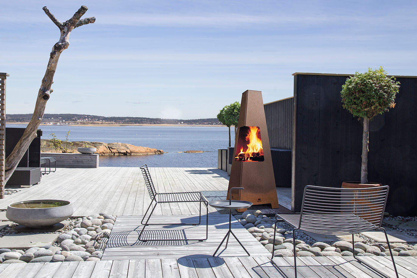 Stor og vedlikeholdsfri utepeis med grillmuligheter, laget i cortenstål. Etter kort tid får materialet en rustikk, røff og rusten overflate. I tillegg til å gi utepeisen en lekker patina, fungerer det også som beskyttelse for stålet, og gjør at utepeisen tåler å stå ute hele året. Et stort, åpent og opphøyd brennkammer, gir godt innsyn til flammene fra flere vinkler. Et flott tilskudd til uteplassen som vil bli et naturlig samlingspunkt til langt på kveld. Grillrist, gnistfanger og underlagsplate fås som tilleggsutstyr. Utepeisen må plasseres på et ikke-brennbart materiale.