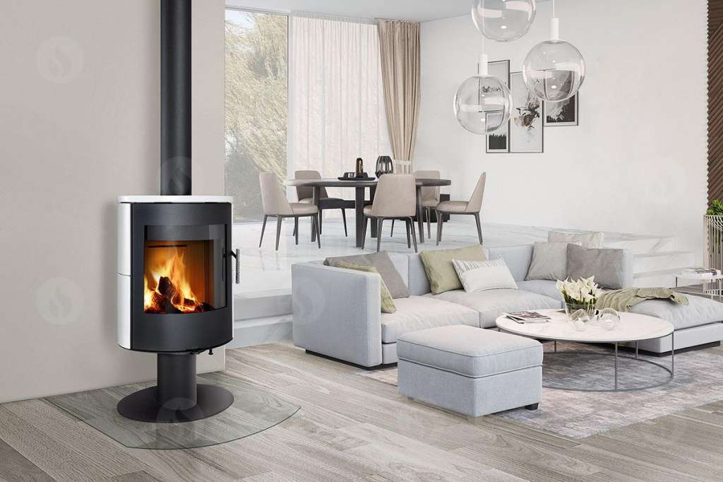 Romotop Ovalis med 360 gr dreiesokkel. Nøye beregning av alle viktige dimensjoner har resultert I et unikt design. Formen på ovner er oval og gir dermed et litt bredere brennkammer enn liknende ovner. Det gjør den lett og bruke å tenne opp, siden man får plass til ved i større lengder. Brennkammeret er kledd med slitesterk og ildfaste keramiske steiner. Stort og buet glass gir meget godt innsyn til flammene. Inntil 40 cm vedlengde. Egnet for lavenergihus. Polerte rustfrie håndtak. Glass med stor radius gir godt innsyn til flammene fra forskjellige vinkler. Peisovnen roterer på egen akse. Forvarming av sekundærluften for å holde glasset rent. Klar for ekstern tilkobling av forbrenningsluft(EAI). Trekkregulering med bare én kontroll