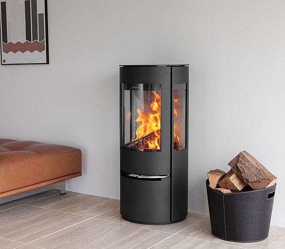Aduro 22 er en slank og elegant ovn som passer perfekt inn på trange steder grunnet sitt beskjedne dybdemål. Det buede glasset og de myke, organiske linjene fører blikket direkte mot flammene. Andre karakteristiske trekk ved ovnen er de minimalistiske håndtakene, det praktiske oppbevaringsrommet med tilhørende dør og ovnens svevende uttrykk som skyldes den smale sokkelen.