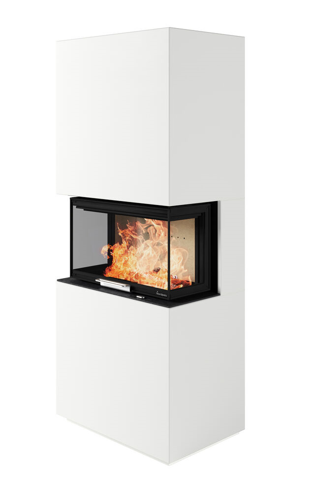 Nordpeis Monaco High er en flott, stor peis med skjulte ventiler i sokkelen som gir et rent uttrykk. Peisen har en eksklusiv heve-/senkedør og et meget godt innsyn til flammene fra tre sider. Monaco High har innsatsen plassert høyt i omramningen og mulighet for sidebenk.